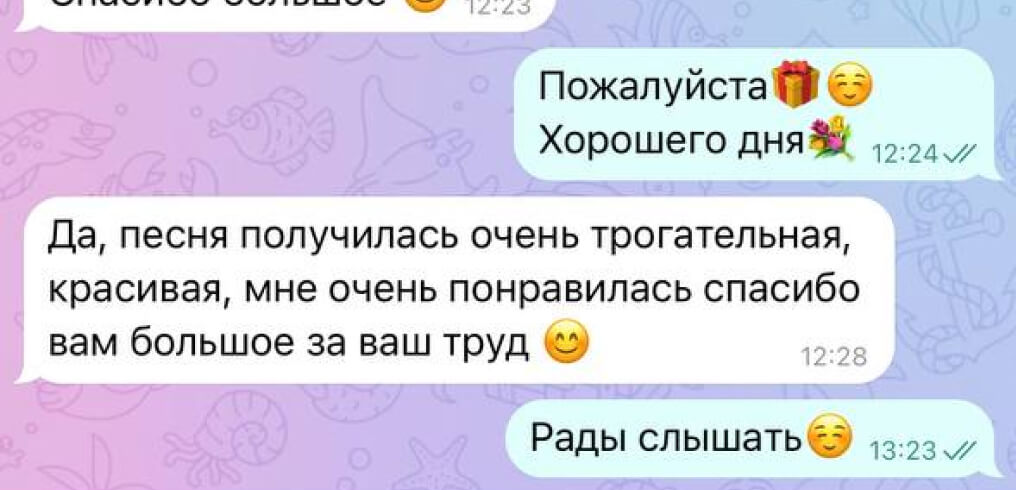 Да, мы понимаем, что иногда не получается вовремя найти нужный подарок и для этого мы сделали дополнительную услугу: написание и исполнение песни за 1-2 дня.